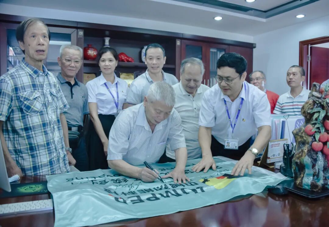 8月17日,广东佛陶集团原董事长周棣华及《石湾陶瓷史》、《佛山陶瓷文化研究》编委会成员:原副总经理卢敦穆、霍锐锦、王苏堂,佛山市钻石洁具副总经理邓伯添,佛山市陶瓷美术学会常务副会长刘孟涵、秘书长杨晓明,中国陶瓷博物馆筹建办副主任霍达炎,佛山市东方印象艺术馆馆长谭浩深,佛山陶瓷文化网潘炳森一行莅临广东新葡萄AMG官网活动热能科技有限公司参观指导。